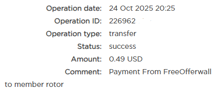 Operation ID: 2862216 Operation Date: 25.10.2025 Status: Proceed Immediately Sender's Account: ePayCore E029772 Amount: $10.92 USD Note: Withdrawal to HyipsClub from Crypto Botics Limited.