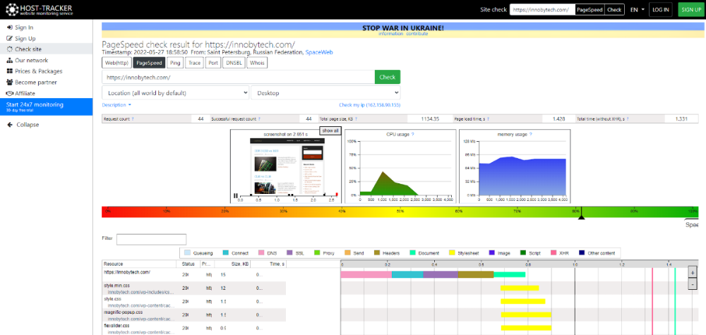 I checked the speed of your site with a special monitoring service. If we talk about the version of the site for desktops, the main page of the site loads in 2.6 seconds. If we talk about the mobile version of the site, it loads in 7+ seconds. This is slightly above normal. Therefore, you need to optimize the site for mobile devices.