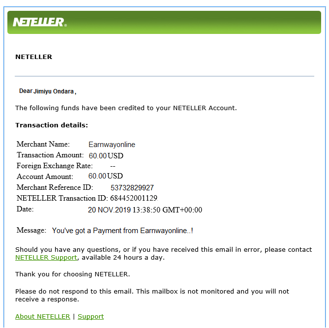 Earnwayonline Join Now and get $1 Welcome Bonus. Earn up to $8 Per day by View ads and Surveys. share your referral link to your friends and family and earn up to $15 Each per referral. Get Up to $8 Cash Back Coupon . Instant cash out by skrill, neteller , Perfect Money or payeer. Minimum Payout $2 and Maximum No Limit. For get Welcome Bonus Go in your verify earnwayonline account click on cash back button then scratch your card . Firstly sign up with us and verify your email . Then login your account and complete your daily ads and survey tasks. and Earn Cash daily. I am working here from last 3 months and already earned $480 without investment .check my Payment proof . Register with this link - https://www.earnwayonline.com/registeration.php?Referral=AJW1 For check more Payment proof check Here - https://www.instagram.com/explore/tags/earnwayonline/ For more details you can contact on website live chat..